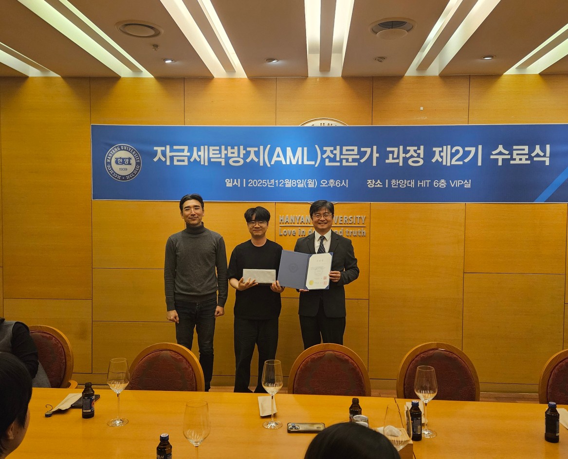 AML전문가과정 2기 수료식이 2025년 12월 8일에 한양대학교 HIT관 이십사절기에서 진행되었습니다.